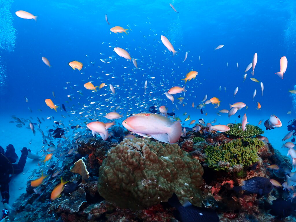 乱舞するケラマハナダイとカシワハナダイ